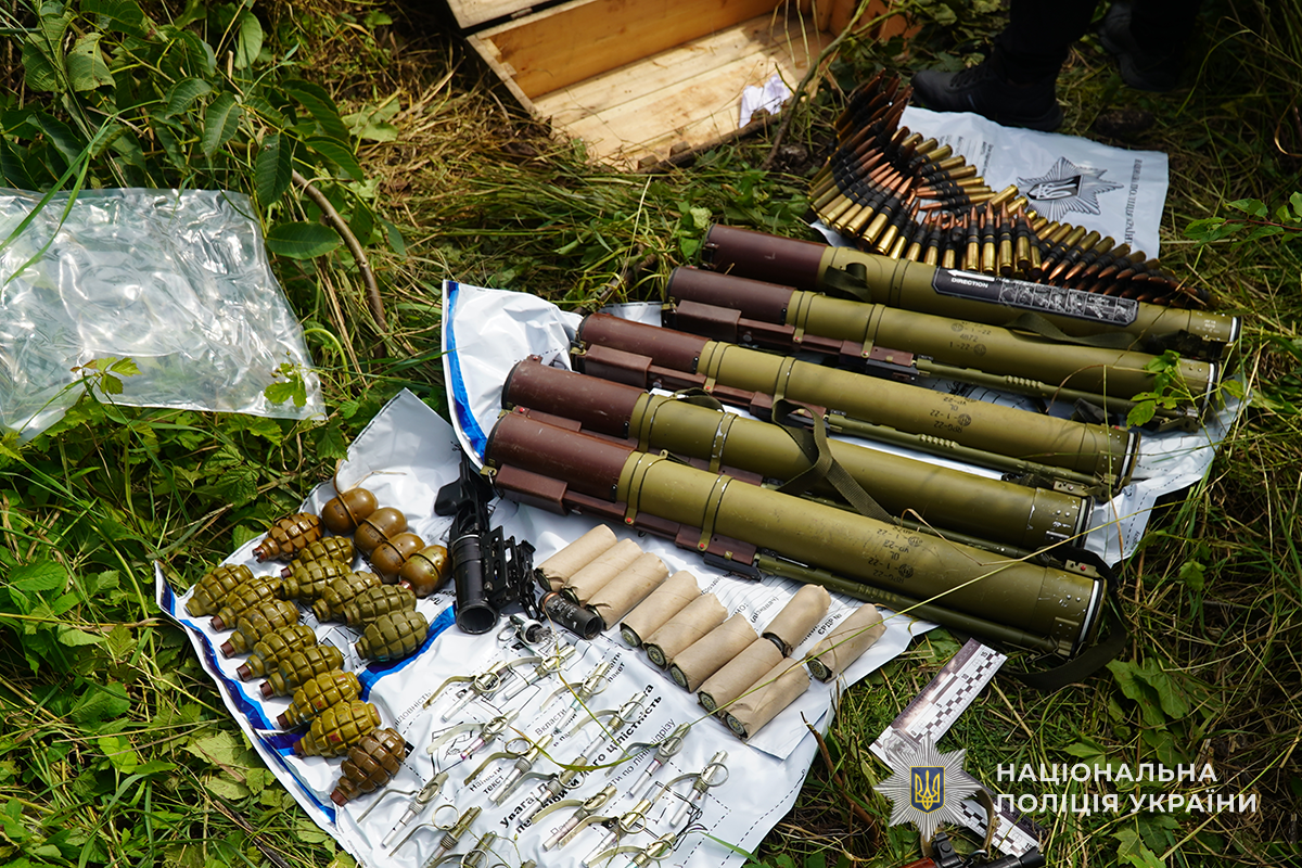 Крім наркоторгівлі, слідчі задокументували факти незаконного обігу вогнепальної зброї та боєприпасів. Один із фігурантів придбав та зберігав значний арсенал – від великокаліберних патронів і ручних гранат до підствольного гранатомета, пострілів ВОГ та реактивних протитанкових гранат. Усе це він приховав у спеціально облаштованому схроні.