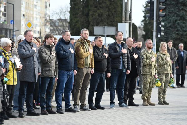 О 9:00 присутні вшанували загиблих хвилиною мовчання, схиливши голови перед подвигом воїнів і мирних жителів, які стали жертвами російсько-української війни.